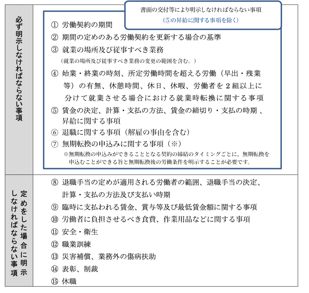 に加え、以下の項目についても、文書の交付等により明示しなければなりません。