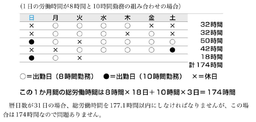 ① 変形期間中の週平均労働時間を法定労働時間以内とすること