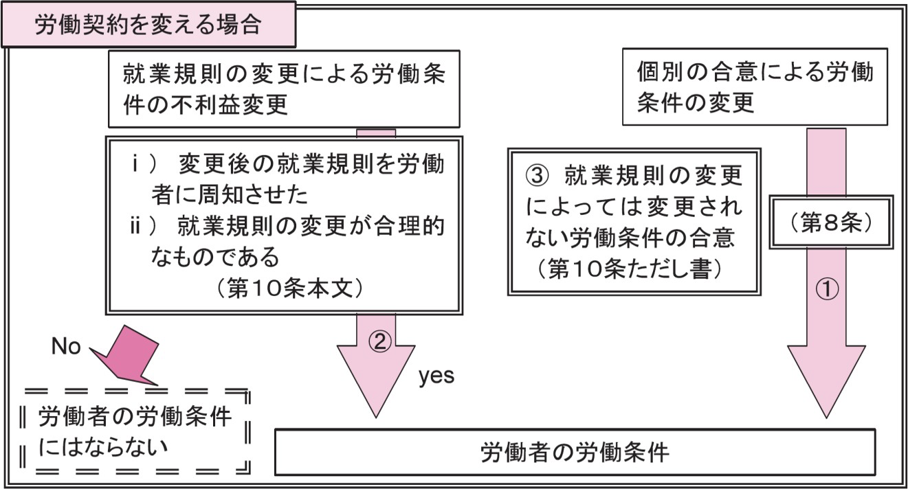 • ① 労働者と使用者の合意により、労働者の労働条件は変更されます。